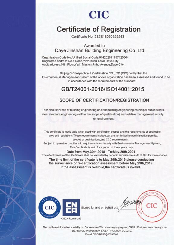 環境管理體系認證證書...